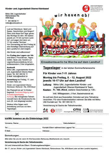 Das Tageslager ist ein Angebot des Jugendfördervereins ooink ooink Productions unter der Leitung von Mirko Ulbl, Jugendarbeiter Kinder- und Jugendarbeit Oberes Kleinbasel ooP und seinem Team.